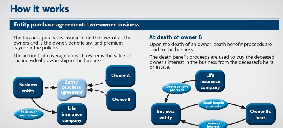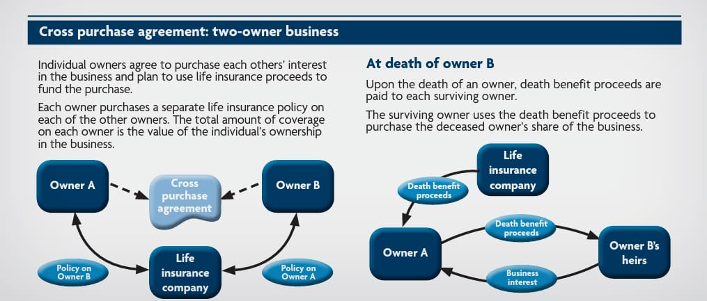 The surviving owners need to have funds available to buy shares from the heirs. Borrowing funds at expensive interest rates, liquidating business assets or using personal property as collateral to fund the purchase all have risk and negative impacts. A life insurance solution Life insurance can be a cost-efficient and relatively simple way to fund a buy-sell agreement. Funding through life insurance is potentially guaranteed and is also generally tax free.