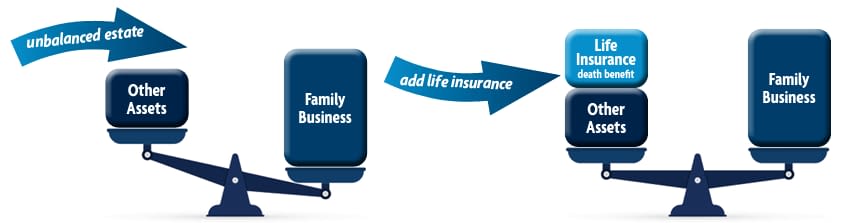 A popular method of estate planning is to use a permanent life insurance policy. Parents can purchase a policy on themselves and the death benefit could be left to the non-participating child. Rebalancing the estate using life insurance can help the business stay in the family and maybe even help the kids get along!